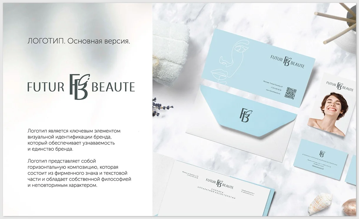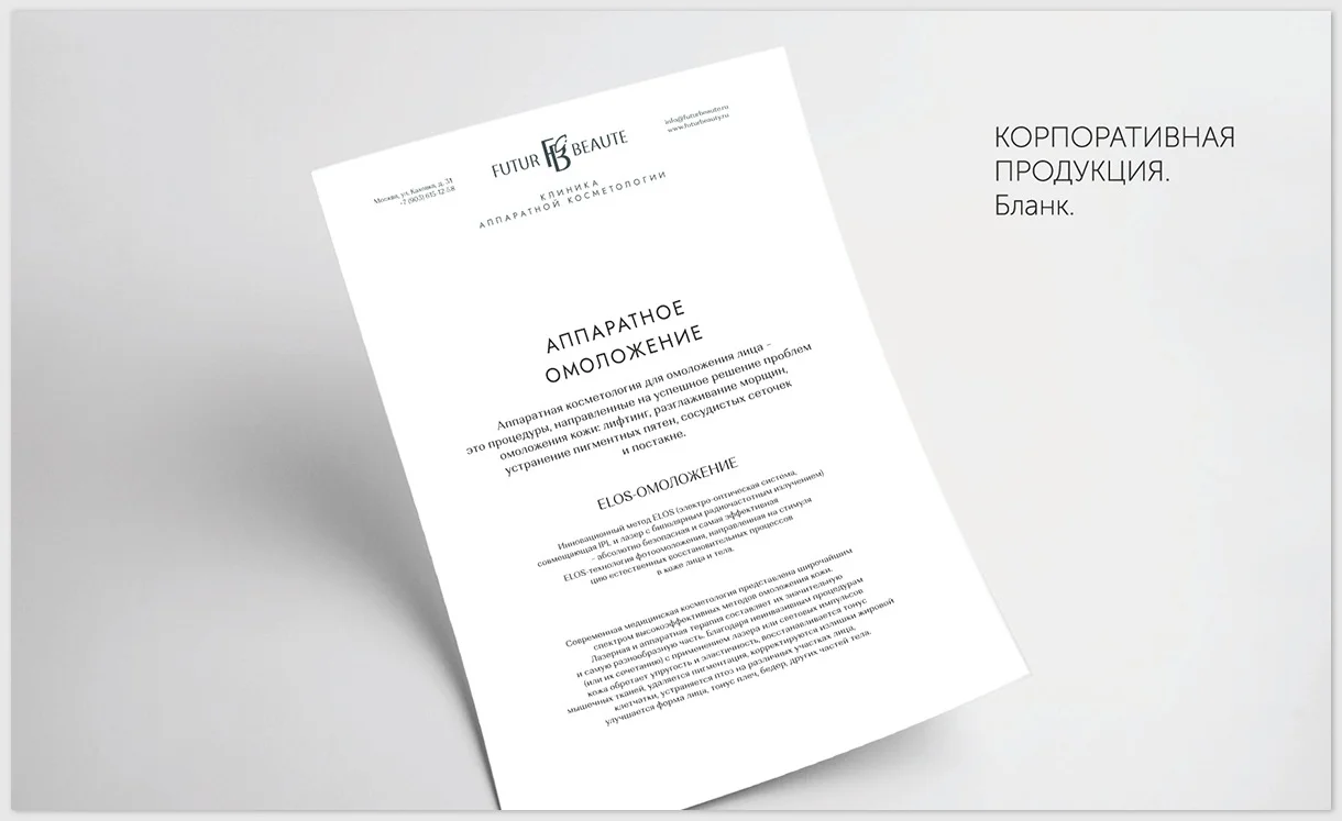 HOT IDEA has developed a branding, logo, and style elements of corporate identity for the FUTUR BEAUTE clinic of aesthetic cosmetology.