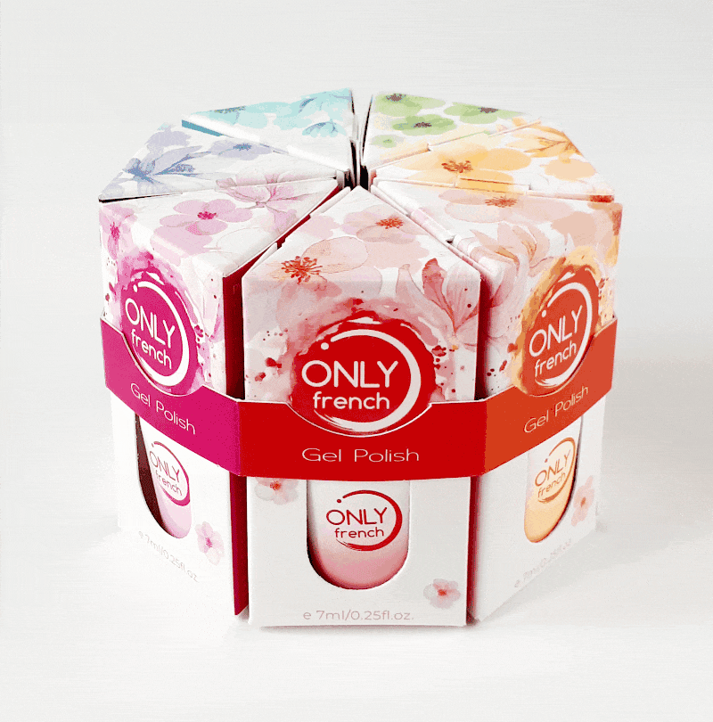 Our agency has developed a unique packaging for a set of gel polishes for professional manicures/pedicures under the brand name ONLY FRENCH. Since the sales are planned in shopping centers and are intended for instant purchases, visual harmony of individual boxes and the set as a whole was crucial for the customer.